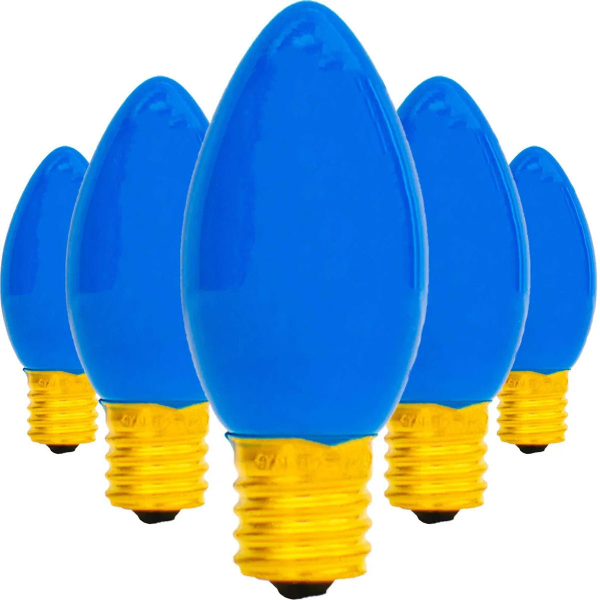 Celebrate Independence Day with classic C-7 and C-9 red, white, and blue candelabra bulbs. Perfect for showing off American pride, these bold ceramic bulbs bring festive color to patios, backyards, and holiday displays. Whether you choose Steady or Twinkle styles, each bulb adds a warm, nostalgic glow that lasts for years—indoors or outdoors. Simply screw them into your existing light string and enjoy a patriotic celebration of light.