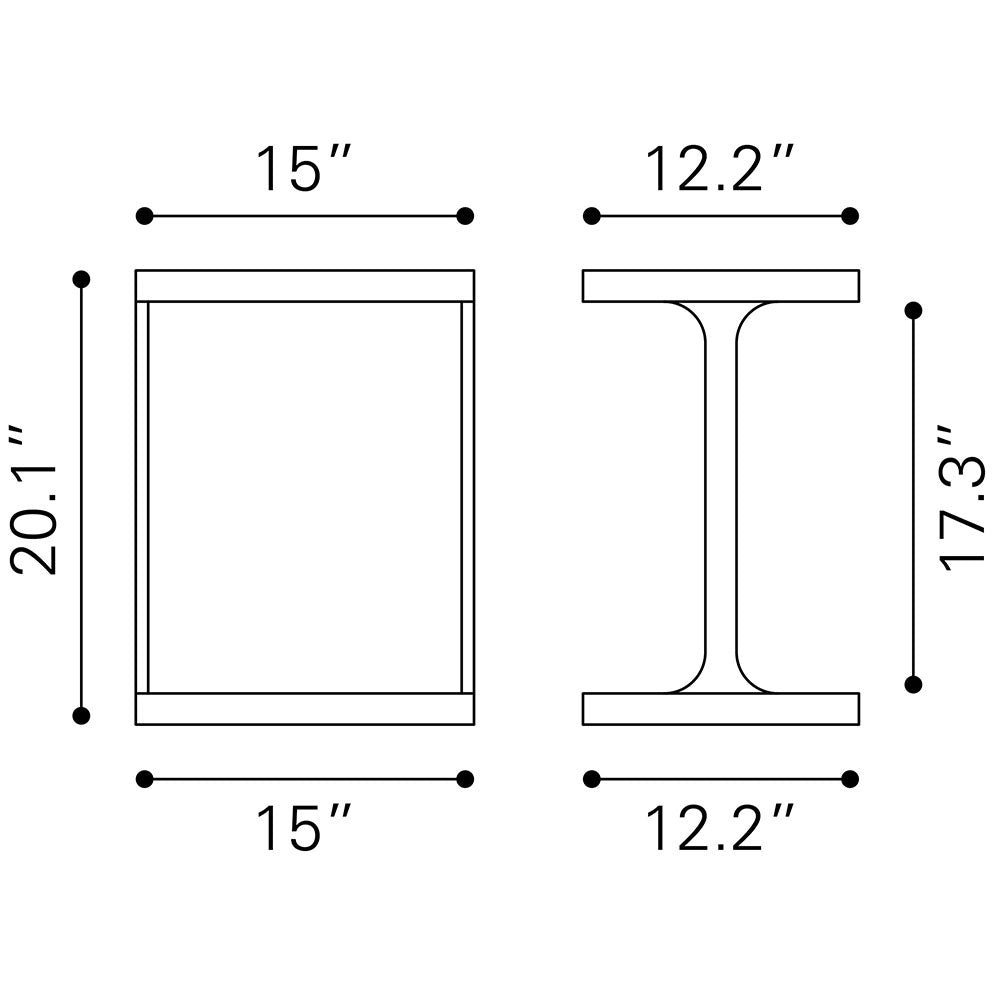 • Width (W): 15 inches