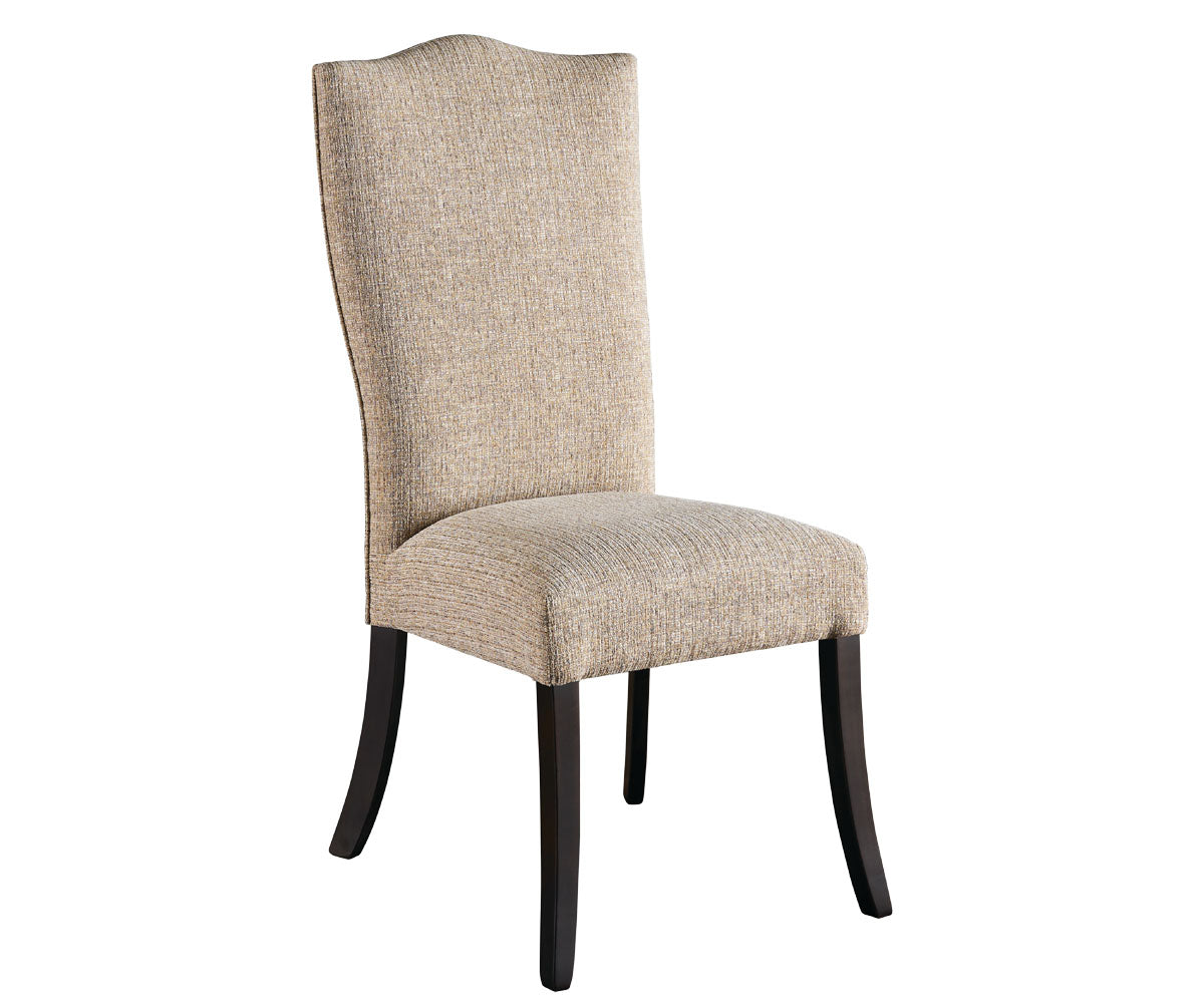 This side chair offers timeless appeal with its Brown Maple frame and upholstered comfort. Finished in a warm Asbury stain and shown in Star fabric, it provides both style and durability for dining or hospitality spaces. Its supportive seat and back ensure comfort, making it a versatile choice for everyday use or formal settings.