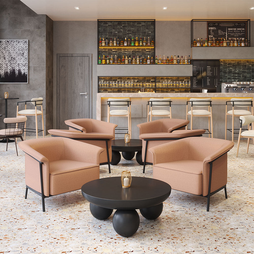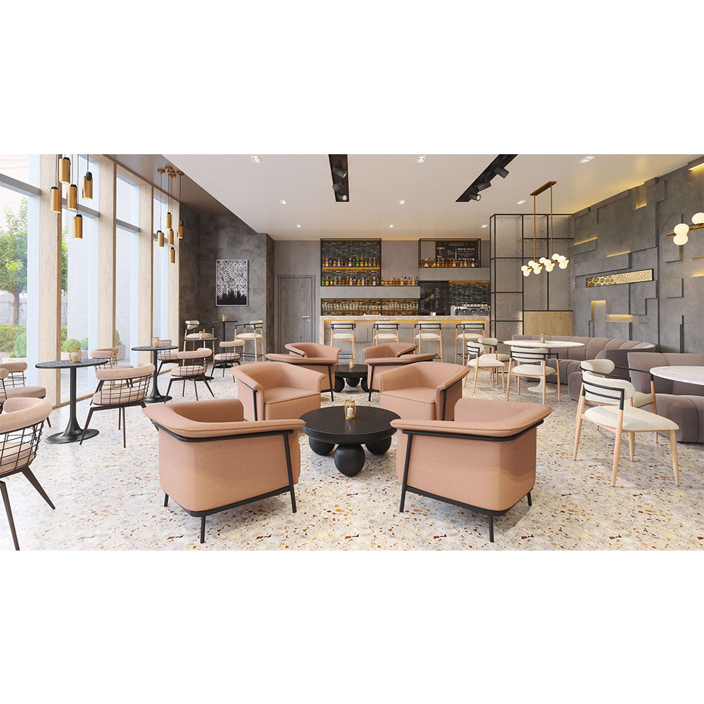 The Burry Accent Chair is a perfect fusion of style and durability. Draped in a tough vinyl covering and supported by a robust steel frame, it brings both comfort and modern aesthetics to any space. With its contemporary design, it fits seamlessly into hotel lounges, living rooms, and reading areas. Combining resilience with sleek design, this chair offers a versatile seating solution for both residential and hospitality settings.