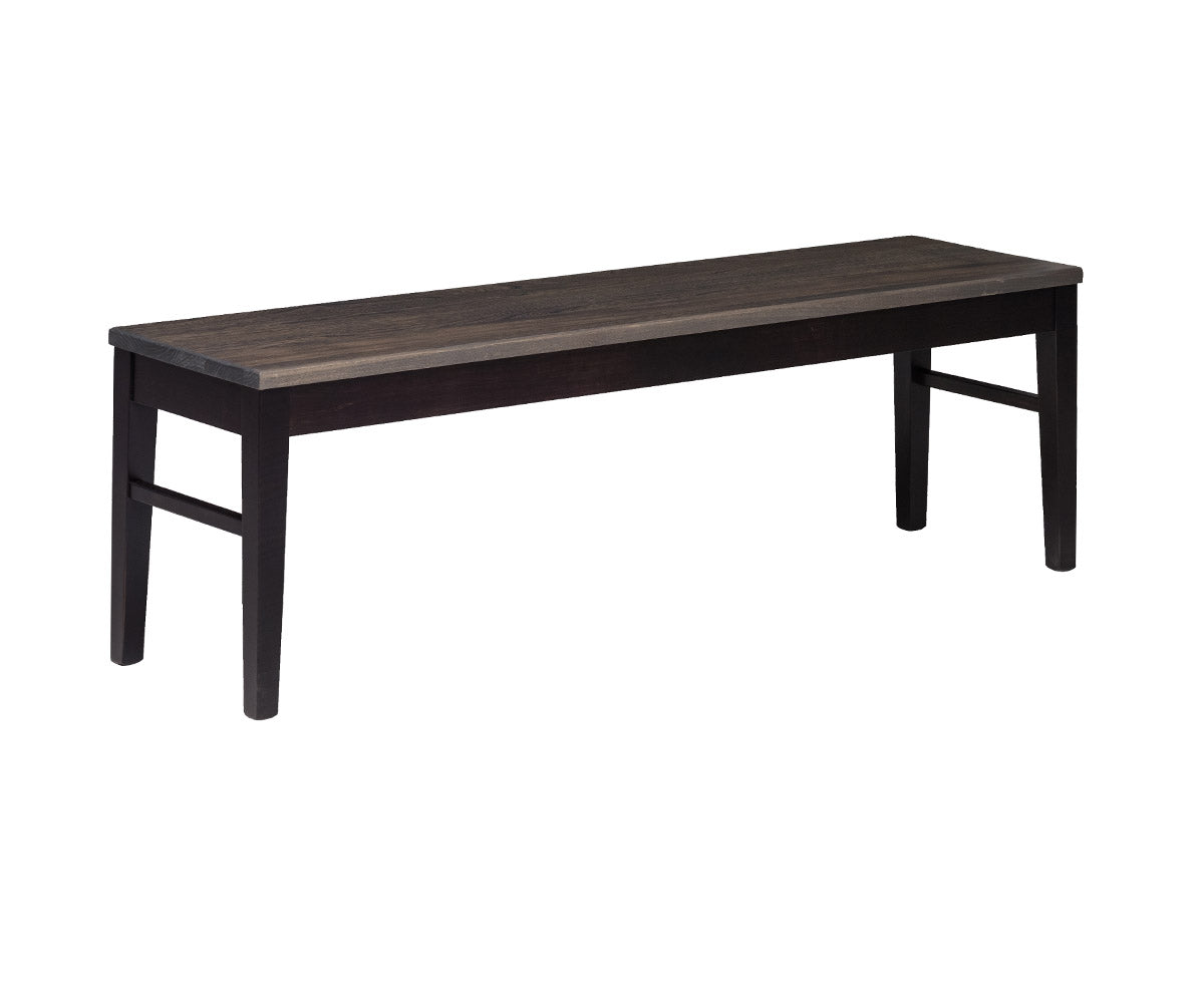 This bench series combines a sleek floating top system with tapered legs for a timeless and versatile look. Crafted with a thick elm wood top and sturdy maple base, it’s available in multiple sizes to suit a variety of seating and space needs.