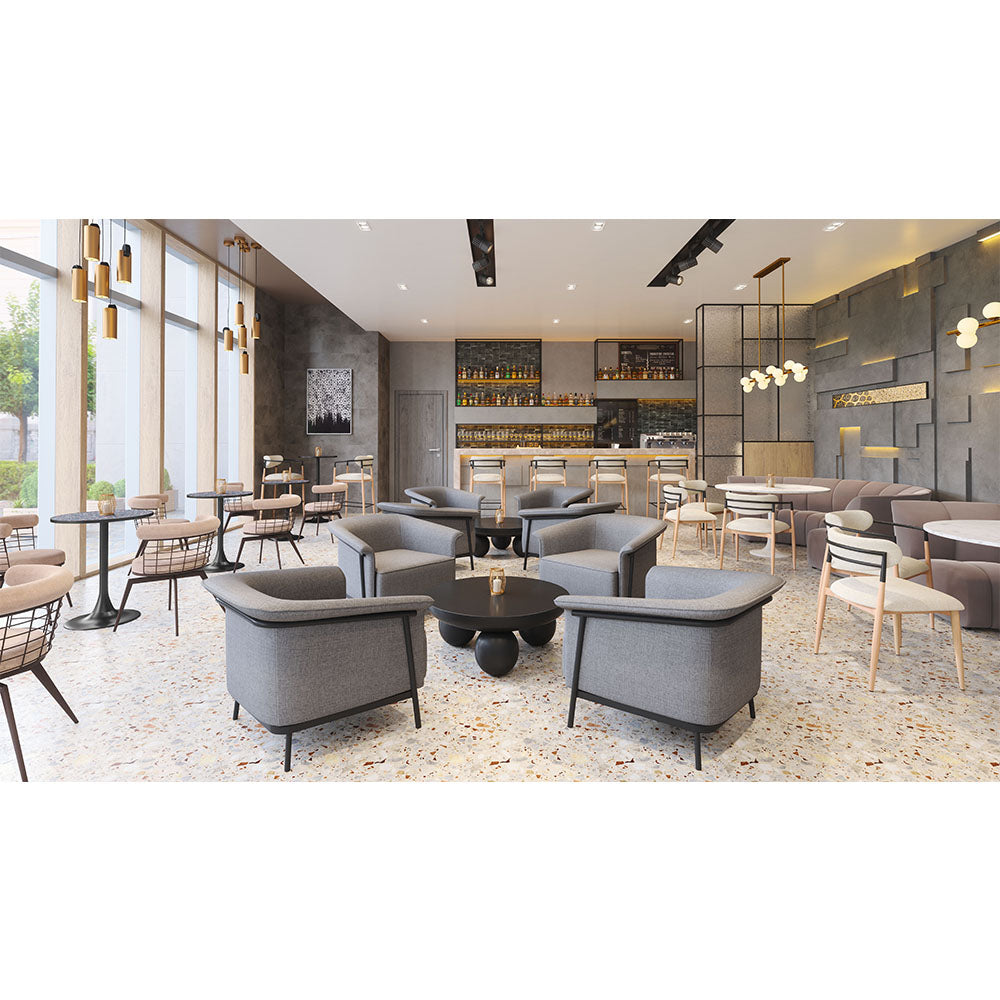 With its Oyster Gray & Natural finish and premium construction, the Equinox Dining Chair exemplifies modern design. Crafted from textured polyester fabric, powder coated steel, and faux wood steel, it combines style, durability, and comfort. Perfect for hospitality environments as well as contemporary homes, this chair is a versatile and elegant seating choice for any setting.