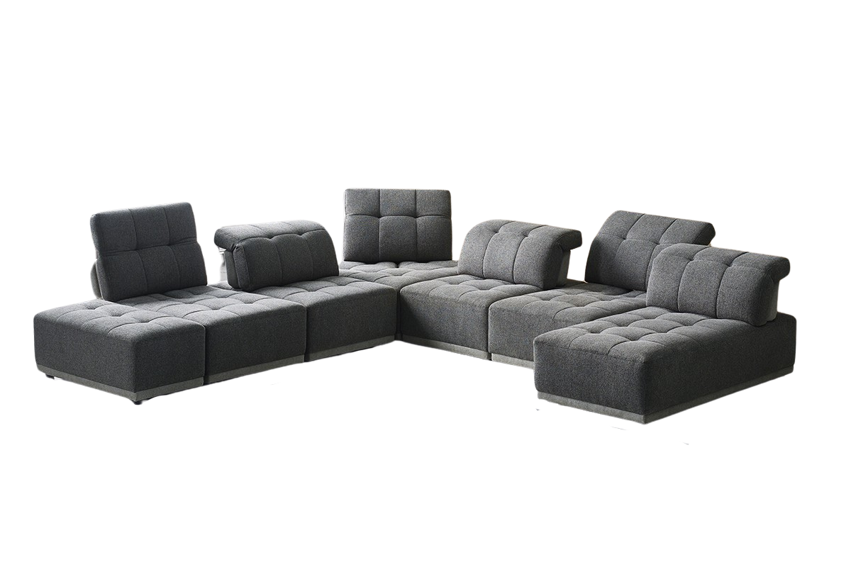 Gray Polyester Modular U Shaped Seven Piece Corner Sectional