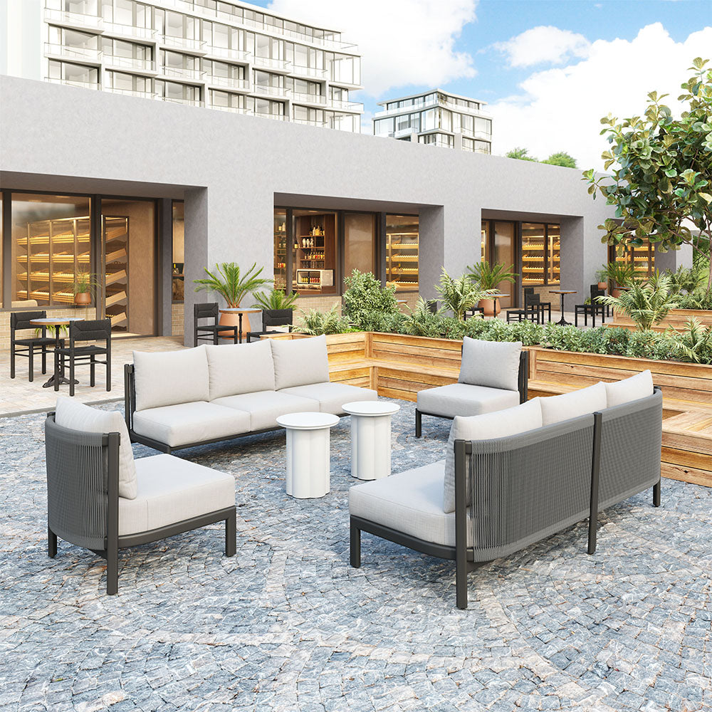The Horizon Sofa embodies luxurious comfort and modern sophistication, making it a perfect choice for both residential and hospitality spaces. Handcrafted with meticulous attention to detail, it combines 100% olefin outdoor fabric with a sturdy powder coated aluminum frame for long-lasting durability. Its contemporary design allows it to integrate effortlessly into living rooms, bedrooms, lounges, or outdoor covered spaces. Whether used as a striking centerpiece or a refined seating solution, the Horizon Sofa offers timeless elegance and dependable performance.