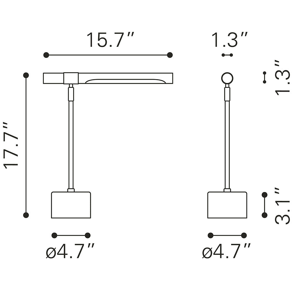 The Kippy Table Lamp has a steel frame with a brushed finish and a wood laminate finish on the upper arm. This modern and minimalist lamp looks great on any desk or nightstand. Includes USB port.