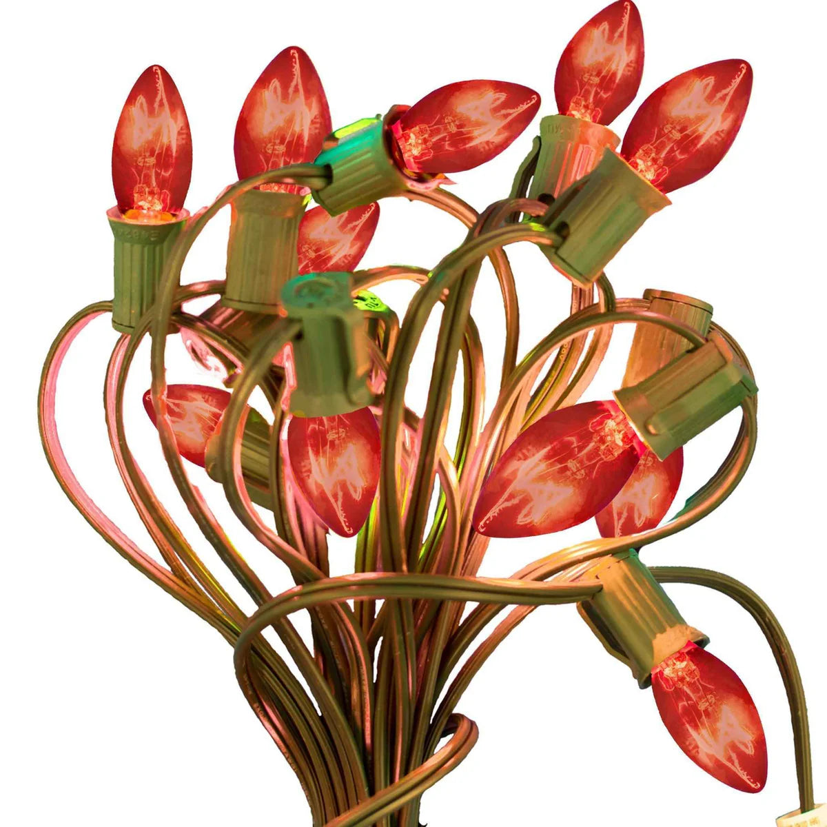 Brighten your holiday season with classic C-7 and C-9 orange candelabra bulbs. Perfect for replacing old or worn-out lights, these vivid orange bulbs bring a warm, festive glow to your Christmas décor—or even Halloween displays. Available in Steady or Twinkle options, they’re built for long-lasting performance indoors or outdoors, making them a versatile choice for year-round decorating.