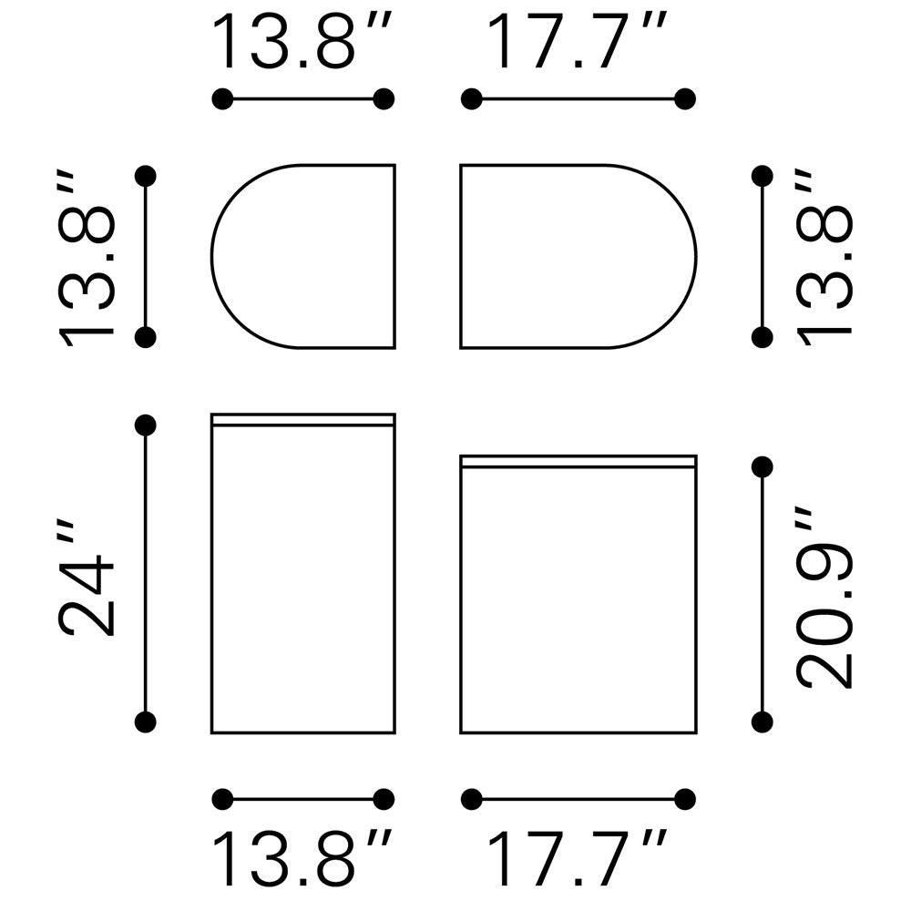 • Table 2 – Width (W): 13.8 inches · Depth (D): 13.8 inches · Height (H): 24 inches