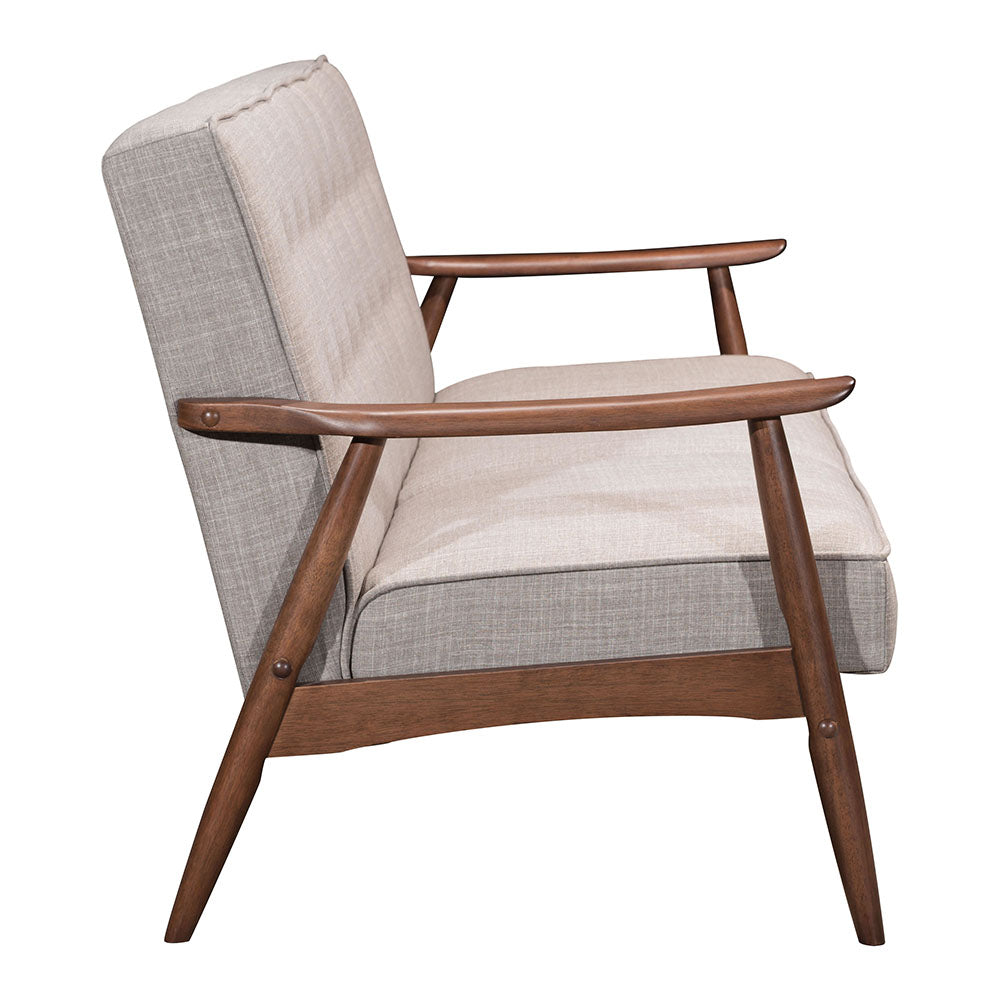 Add sleek simplicity to any living space with the Rocky three-seat modern sofa in soft, durable putty fabric. Perfectly pitched for comfort with its sturdy solid wood frame, angular legs, and sloped arms. Both the seat back and seat cushion are button-tufted with a self-welt. Pair this handsome, compact sofa with the matching Rocky Arm Chair (sold separately) to complete your room.