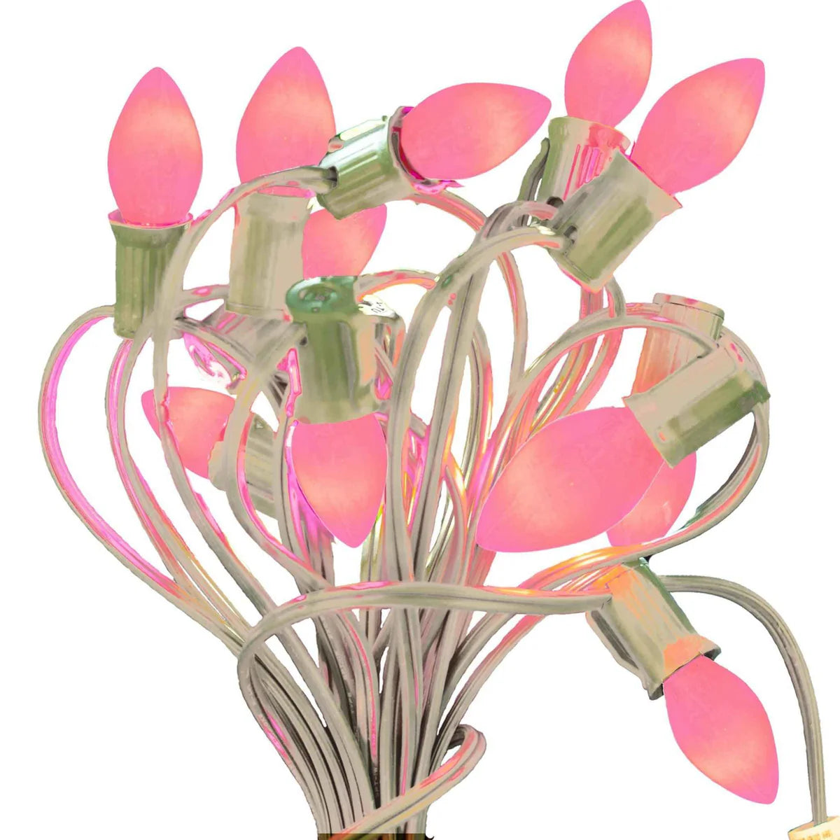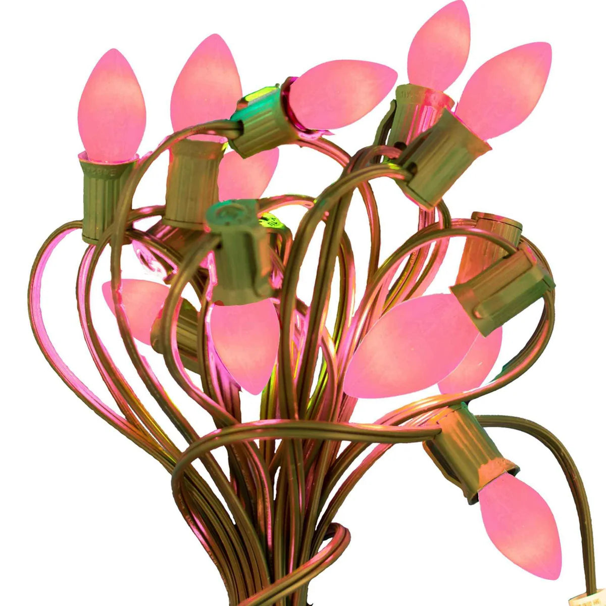 Brighten up your holiday décor with C-7 & C-9 Solid Ceramic Pink Christmas Light Bulbs. These bold and festive opaque pink bulbs add a warm, glowing touch to your string lights, perfect for holiday decorating, themed events, or year-round charm. Designed for durability and long-lasting shine, each bulb delivers steady incandescent lighting to keep your celebrations glowing.