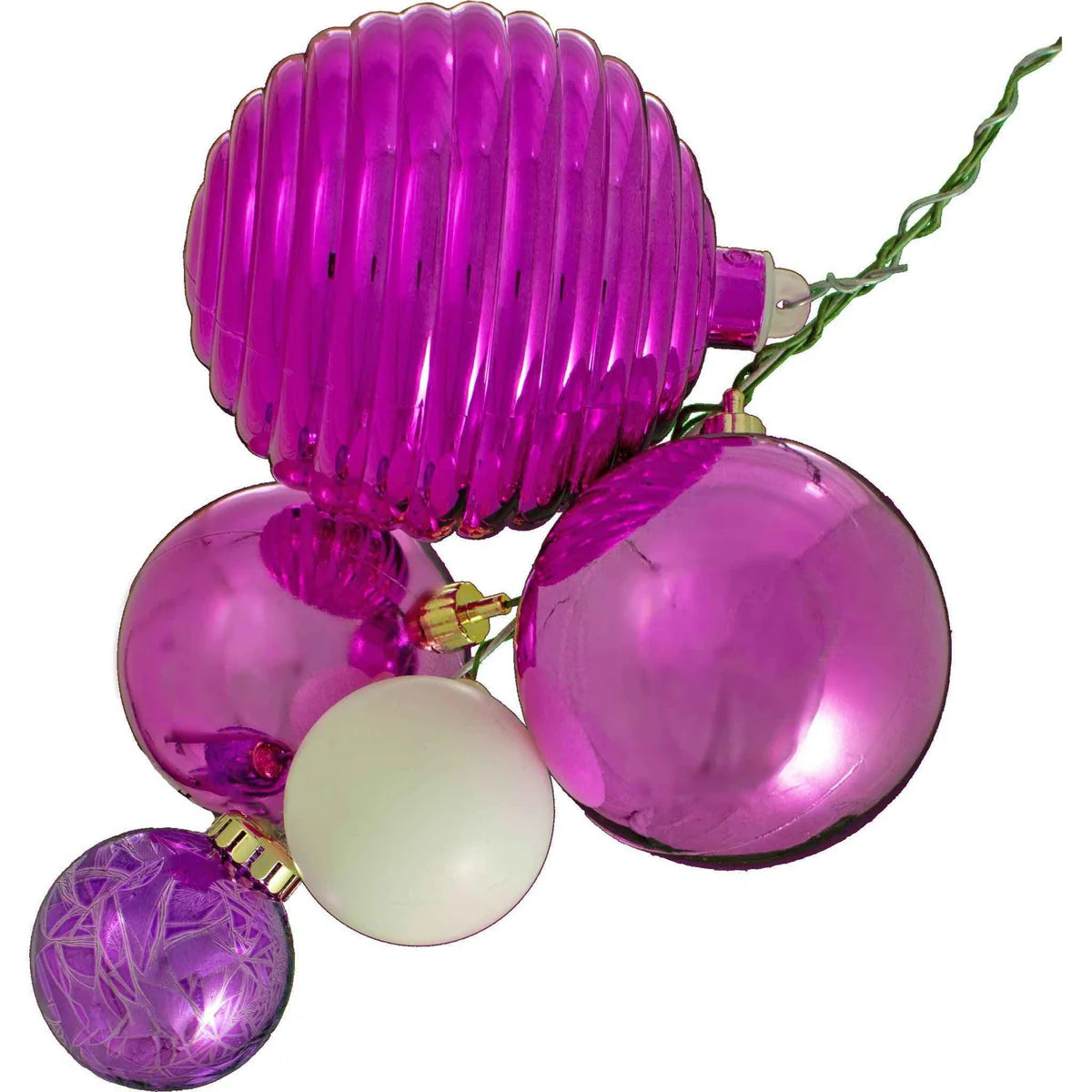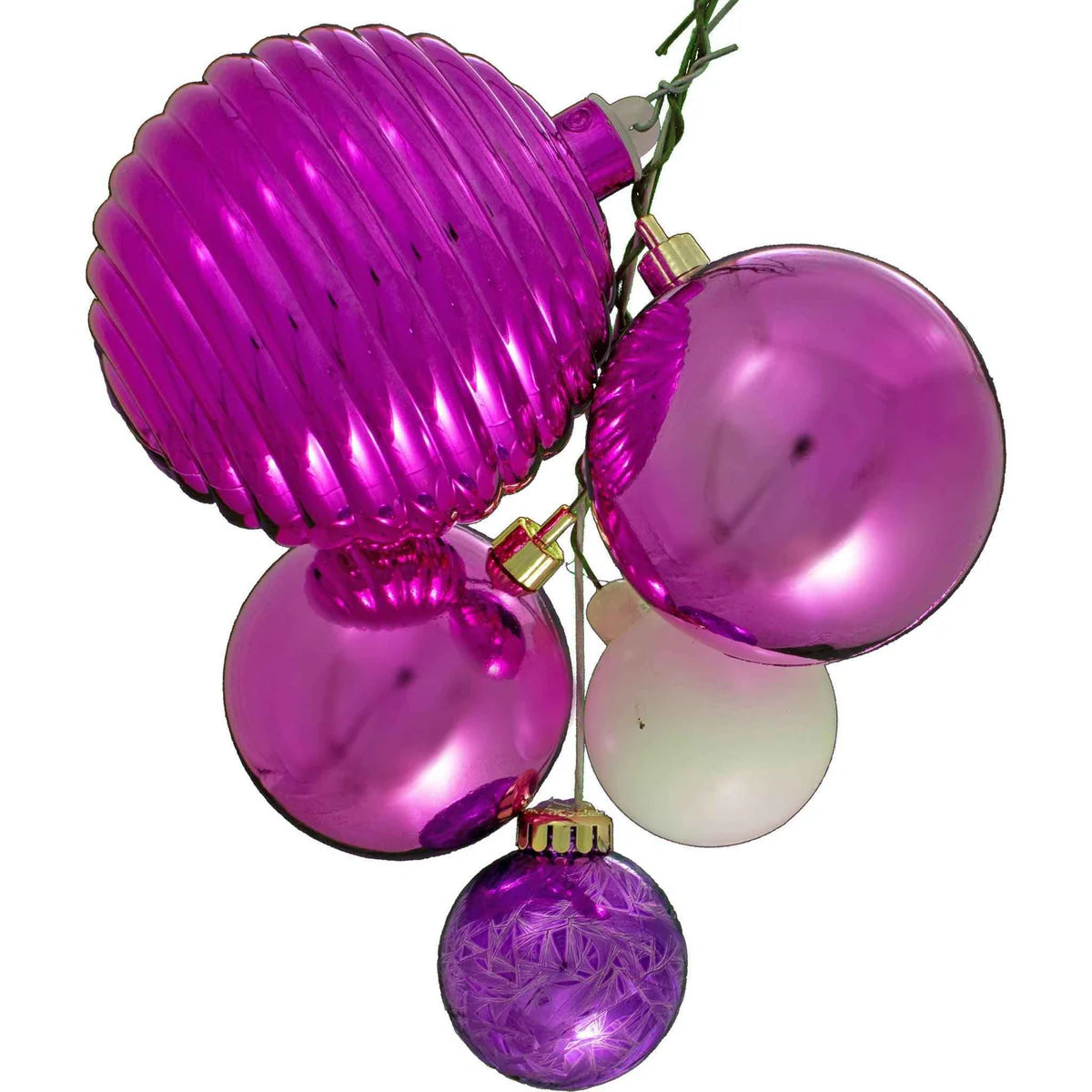 Add a burst of festive color to your holiday décor with the Orinda Christmas Ball Ornament Cluster. Featuring shiny pink, fuchsia purple, and matte white ornaments, these pre-tied clusters make decorating faster and easier while delivering a professionally styled look. Simply attach them to your tree, garlands, wreaths, or mantles for a vibrant and elegant holiday display.