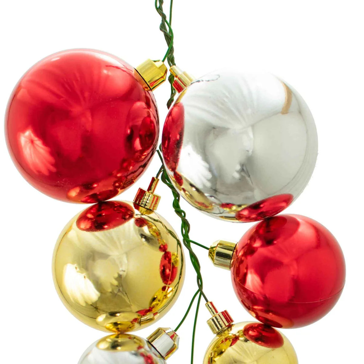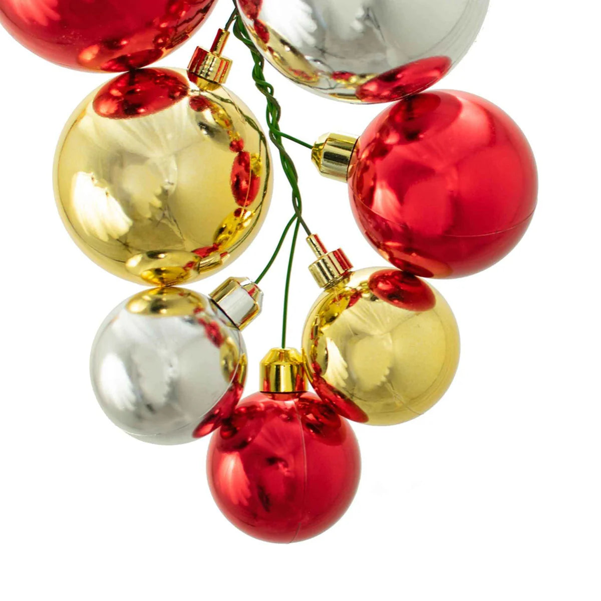 Add vibrant holiday charm with the Sacramento Ball Ornament Clusters, featuring a festive mix of shiny red, gold, and silver ornaments. Designed to save time while decorating, these pre-tied clusters attach easily to trees, garlands, wreaths, mantles, and more. Made with durable shatterproof materials, they bring long-lasting beauty to both indoor and outdoor spaces.