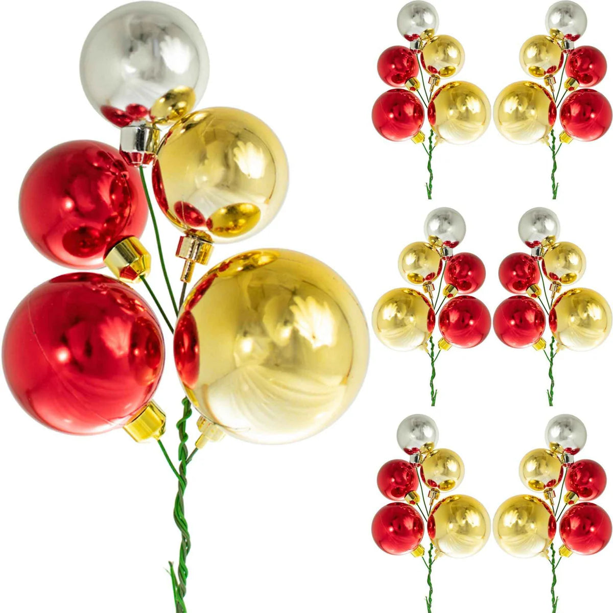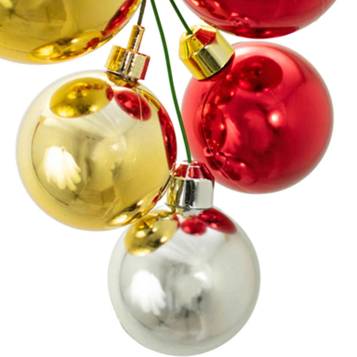 The Santa Rosa ball cluster is a festive and time-saving solution for holiday decorating. Each cluster combines shiny red, gold, and silver ornaments in a pre-tied bundle, allowing you to decorate trees, garlands, wreaths, banisters, and mantles quickly and beautifully. Handmade with professional quality, the ornaments are permanently secured together for durability, while the included wire makes attaching them effortless. Designed for both indoor and outdoor use, these shatterproof clusters bring long-lasting holiday charm to your décor.