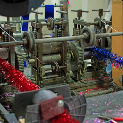 Celebrate the 4th of July with rustic American pride. This handcrafted Tinsel Garland American Flag is designed to bring festive spirit to your walls, porches, or celebrations. Featuring bold red, white, and blue garlands attached to a steel frame, the flag folds easily for storage and can be displayed year after year. A perfect statement piece for Independence Day or patriotic décor.