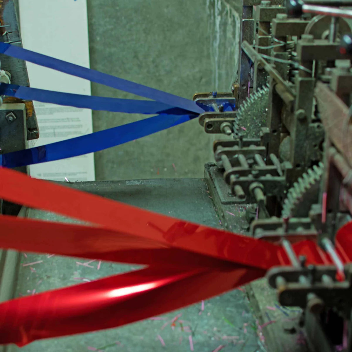 • Design: 13 red, white, and blue tinsel garland stripes on a steel frame