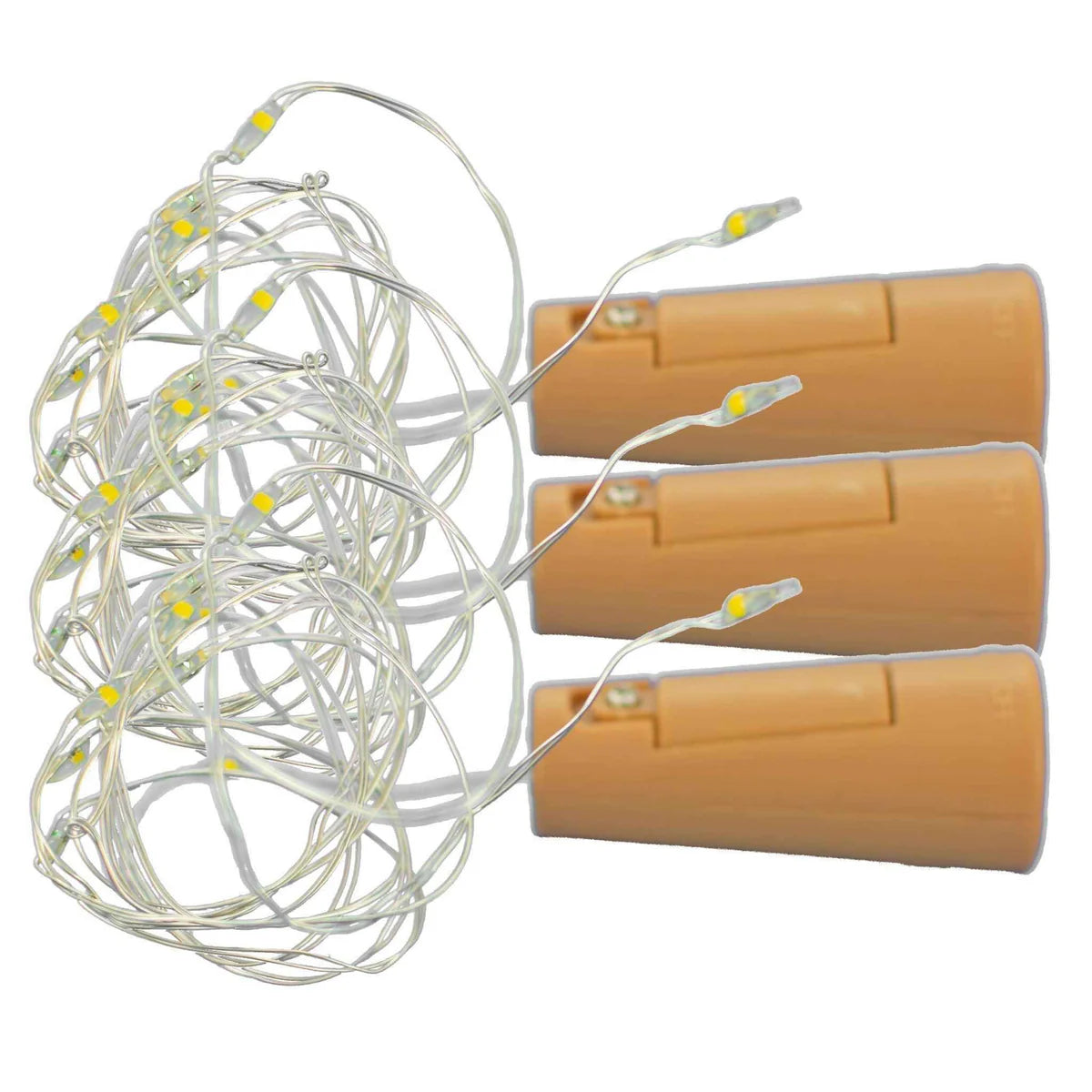 Transform empty wine bottles into glowing lanterns or tabletop centerpieces with wine bottle string lights. Each set comes with a brown plastic cork that fits securely into the neck of a bottle, with fairy lights attached on a flexible silver wire. The lights can be shaped inside the bottle for creative displays and emit a warm white glow, perfect for parties, holidays, or ambient home décor. Battery-operated and weather-resistant, these lights are easy to use indoors or outdoors.